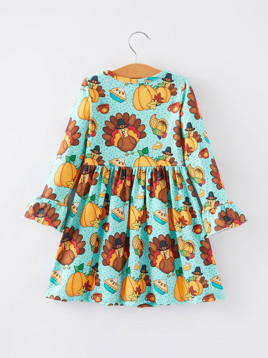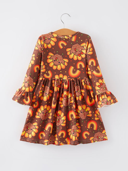 Thanksgiving Turkey Rainbow Print Girls Dress