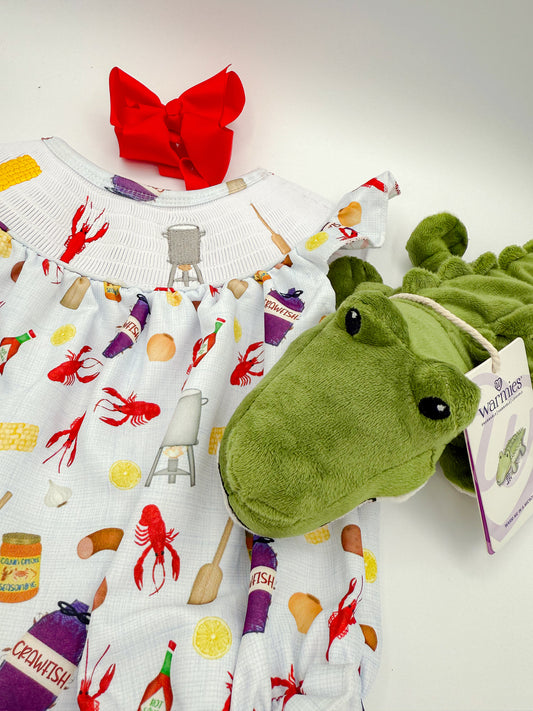 Adorable Crawfish Smocked Children's Outfit Girl Bubble | Southern-Themed Smocked Clothes