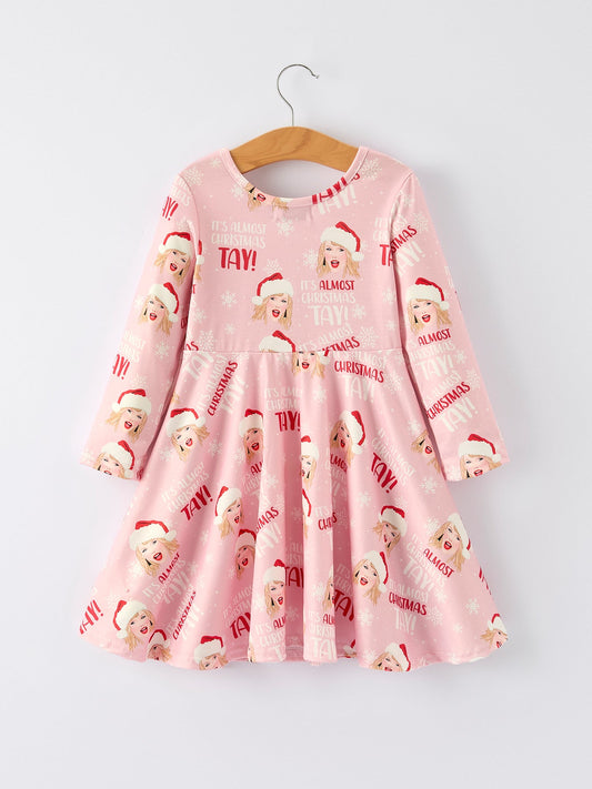 Christmas Ts Twirly Print Girls Milk Silk Dress