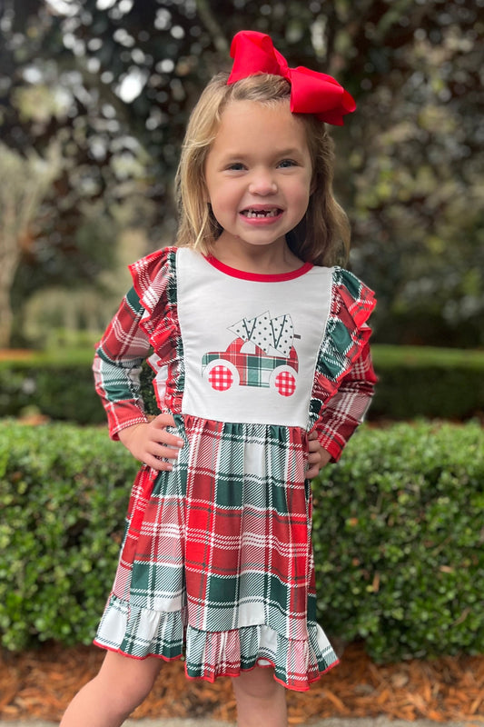 Plaid Christmas Tree Truck Boutique Dress