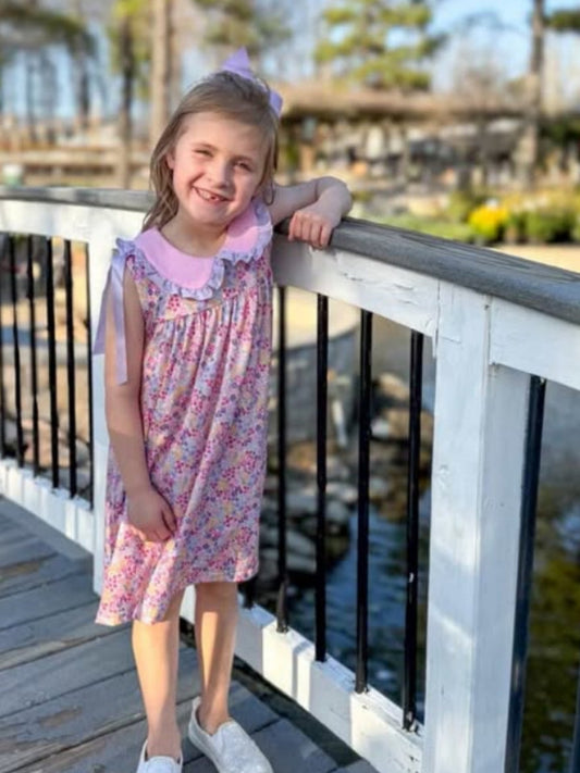 Spring Floral Smocking Embroidery Bow Girls Dress