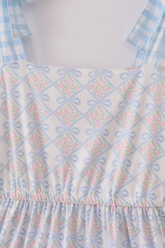 Lavender floral bow embroidery swiss dot girl bloomer set