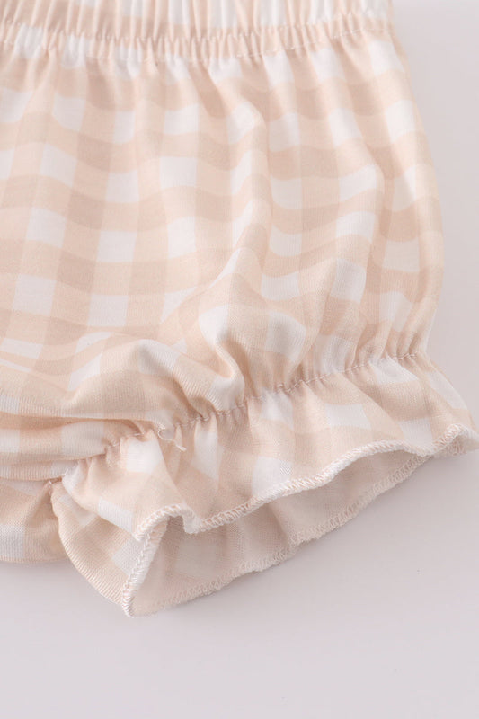 Khaki farm print bow girl set