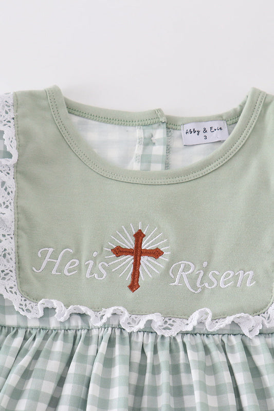 Sage easter he is risen cross embroidery girl set