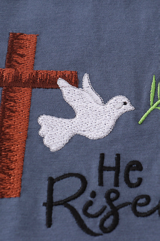 Blue he is risen embroidery boy set