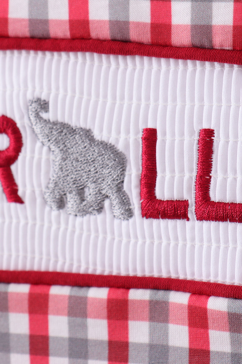 Roll into game day style with this adorable Alabama-inspired shorts set! Featuring a classic plaid pattern with charming smocked details and ruffled accents, it's the perfect outfit for young fans cheering on their team. The coordinated two-piece design makes getting dressed a breeze, while the playful ruffles add that extra touch of Southern charm. Whether you're tailgating or heading to the stadium, this set captures school spirit with undeniable cuteness. Go Tide!