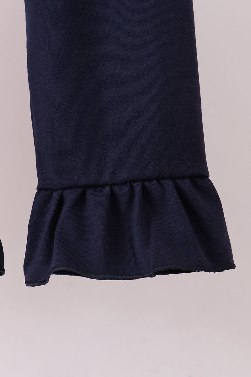 Strut your stuff in this adorable Auburn embroidery ruffle stripe pants set! Featuring charming embroidered details and playful ruffled accents along striped panels, this two-piece set brings personality and flair to any wardrobe. The comfortable pants pair perfectly with the coordinating top for an effortlessly cute look that's ready for playdates, casual outings, or cozy days at home. Mix, match, or wear together—either way, you'll love the whimsical vibe this set delivers!