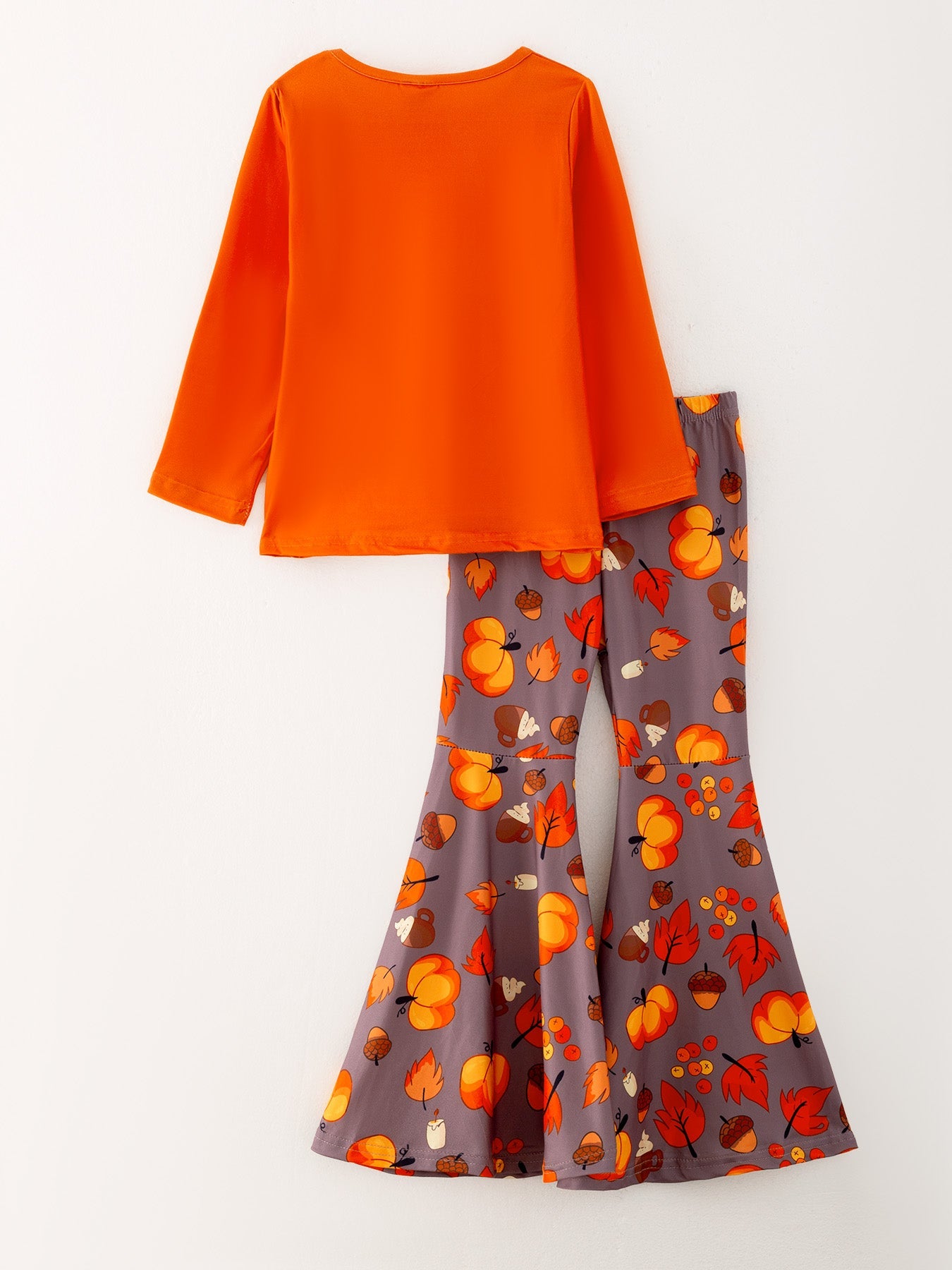 Autumn Leaves Pine Cone Stripe Print Girls Set