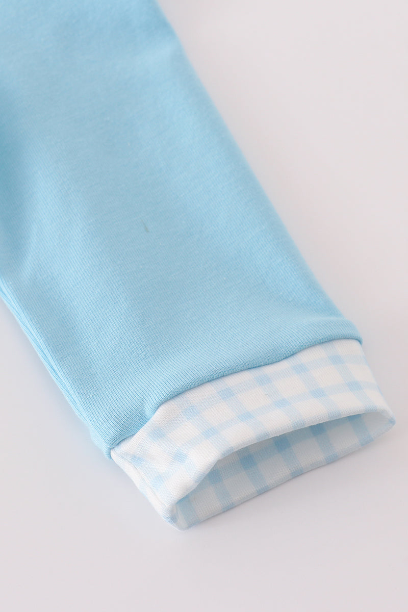 Blue character embroidery romper