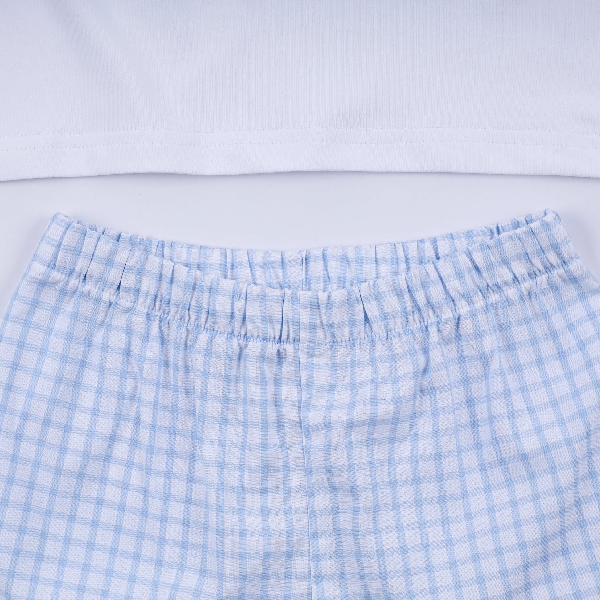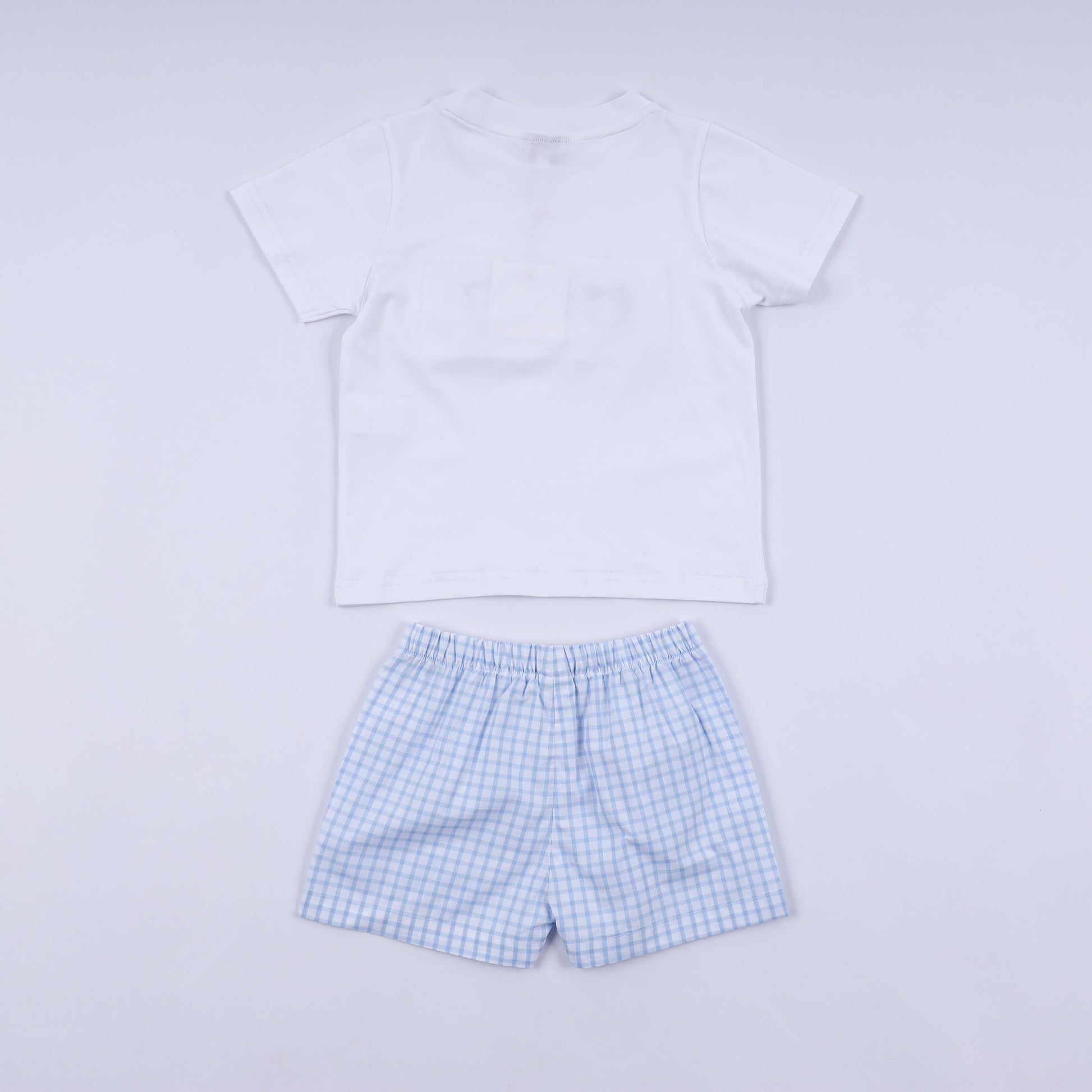 Blue character hand smocked gingham shorts set