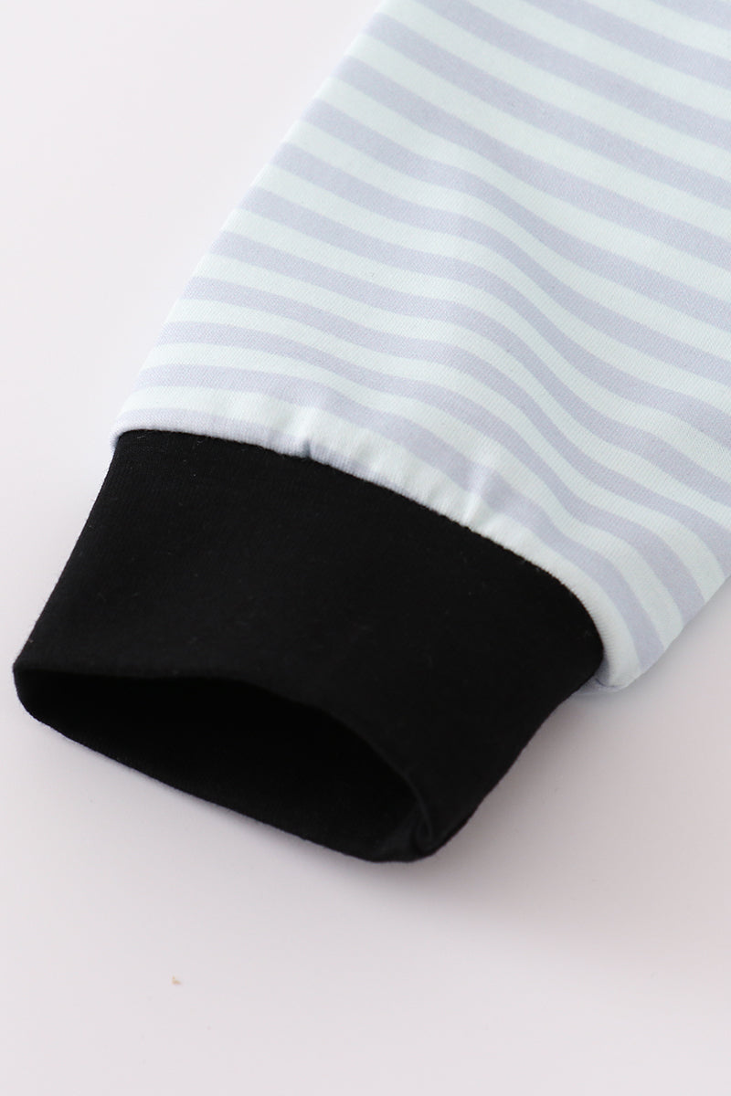 Get ready for spooky fun with this Blue Halloween Spider Embroidery Stripe Pants Set! Featuring playful spider embroidery and bold stripes, this set brings festive charm and comfort together. Perfect for Halloween parties or cozy nights, it adds a whimsical touch to your seasonal wardrobe.