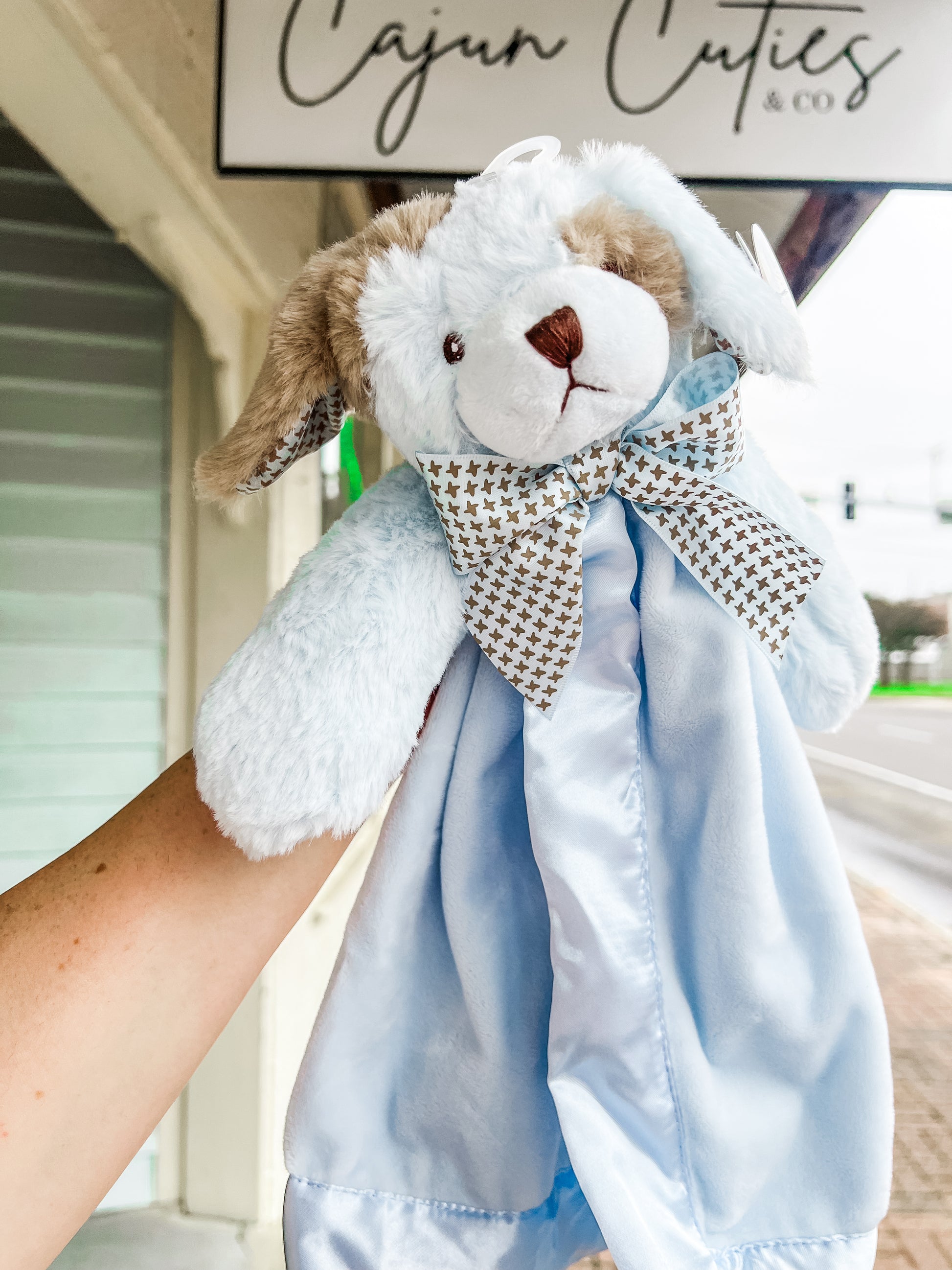 Cute and cuddly blue puppy lovey for your little one! Perfect for snuggling and providing comfort and security. Made with soft, high-quality material that is gentle on delicate skin. Give the gift of puppy love and comfort to your child.