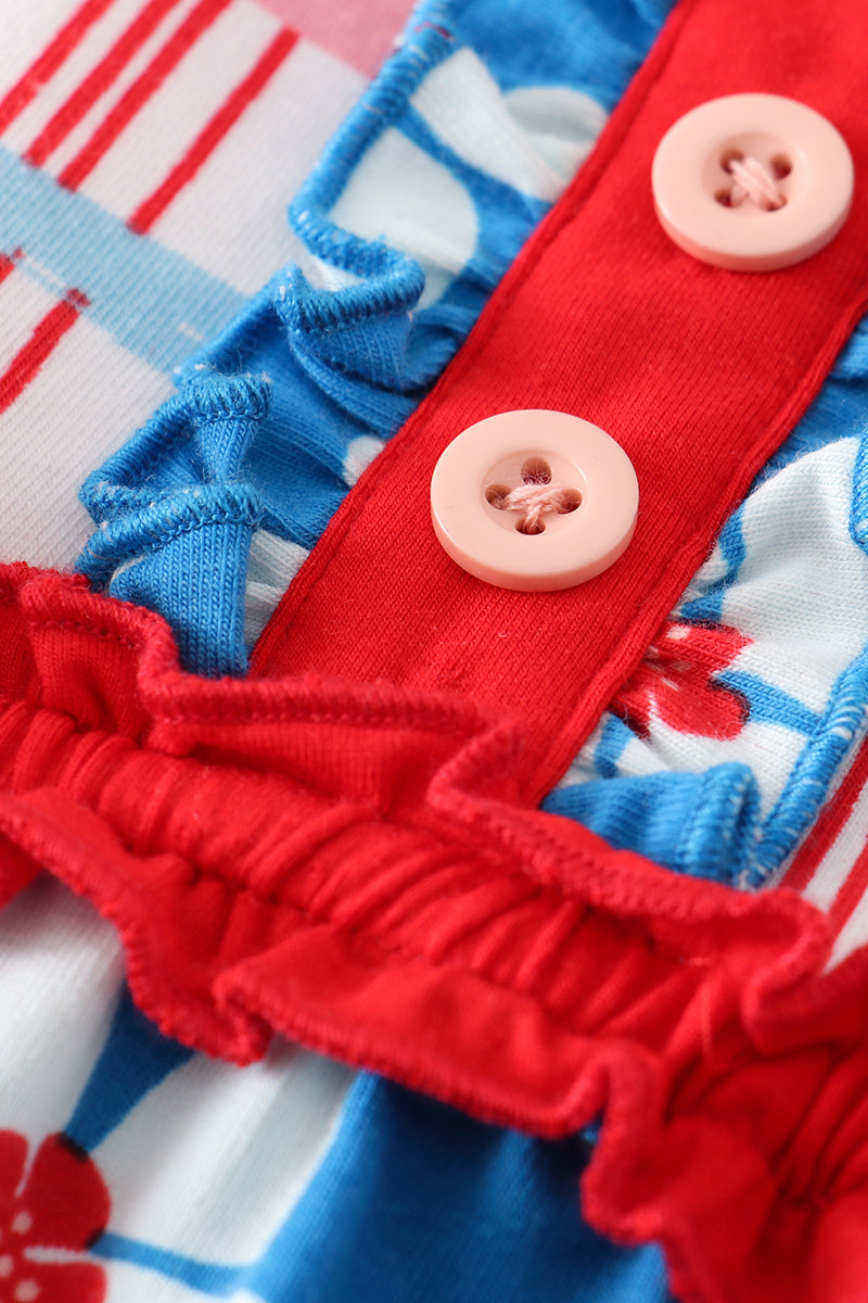 Get ready to bloom in style with our Blue & White Floral Print Ruffle Girl Romper! This playful and playful romper features a beautiful floral print and charming ruffles, making it the perfect choice for any fun-filled day. Perfect for the little fashionista in your life!