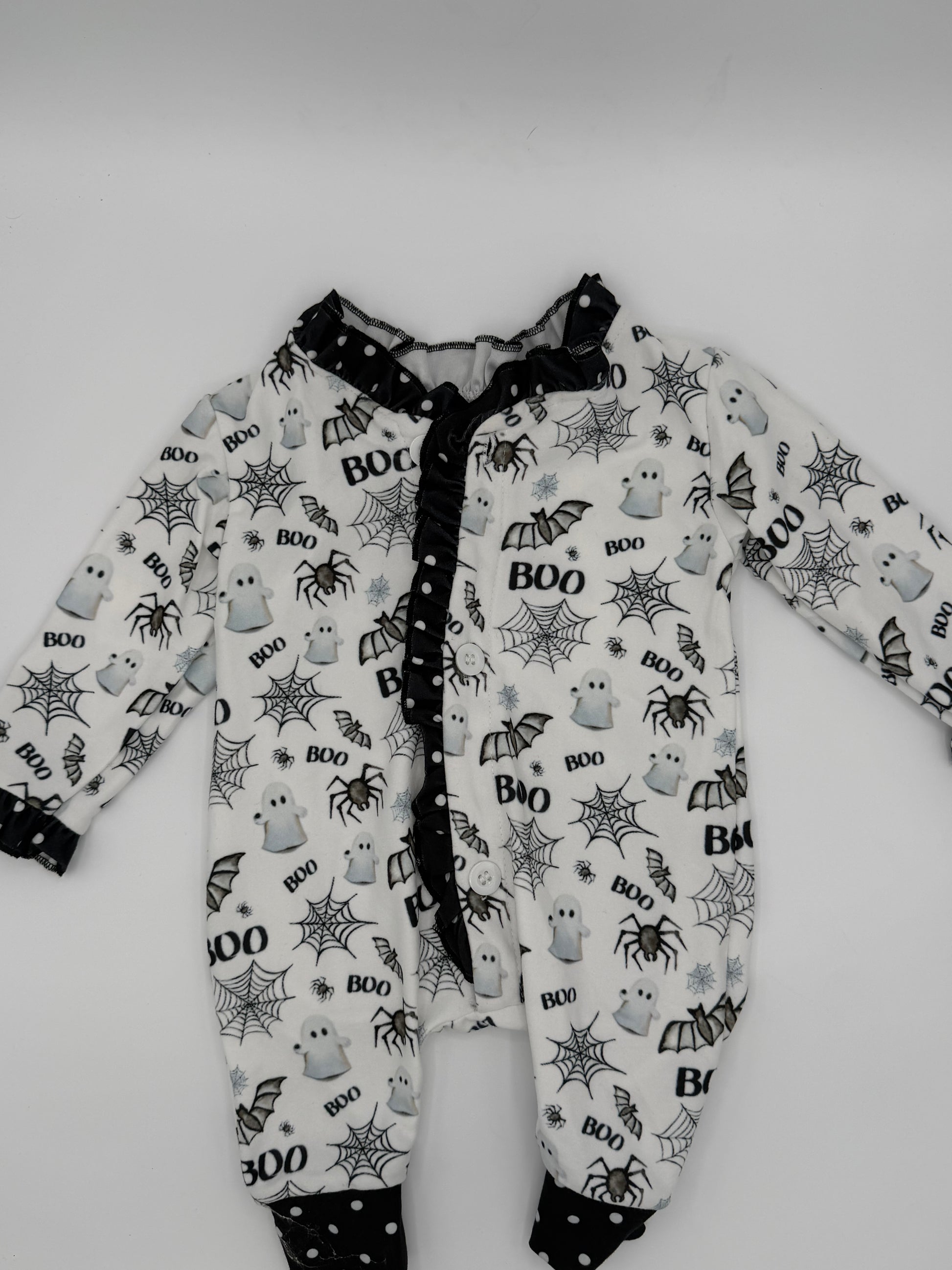 Our Halloween Ruffle Onesie is perfect for pumpkin patch adventures, trick-or-treating, or cozy fall nights at home. This boutique-quality onesie features adorable ruffle details for a girly touch, making it a must-have for your little oneβs Halloween wardrobe.