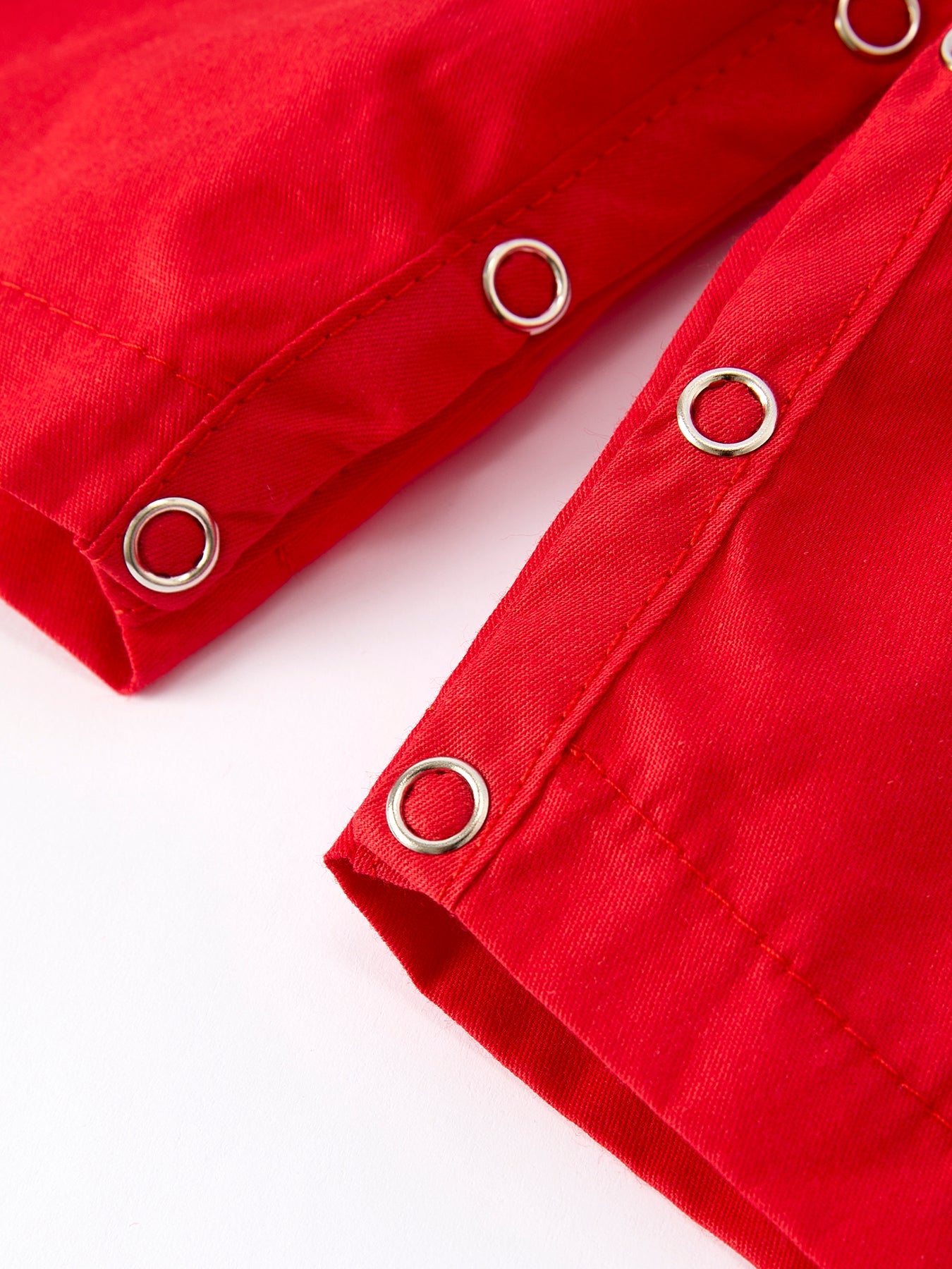 Celebrate your little one’s first holiday in style with this Christmas Gingerbread Embroidery Red Baby Boy Romper. Crafted from soft, cozy fabric, it features charming gingerbread embroidery and a cute bow detail that adds festive flair. Designed for comfort and easy dressing, this romper keeps your baby snug while making holiday photos unforgettable. Perfect for Christmas gatherings, it combines adorable design with practicality to make your baby the star of the season.