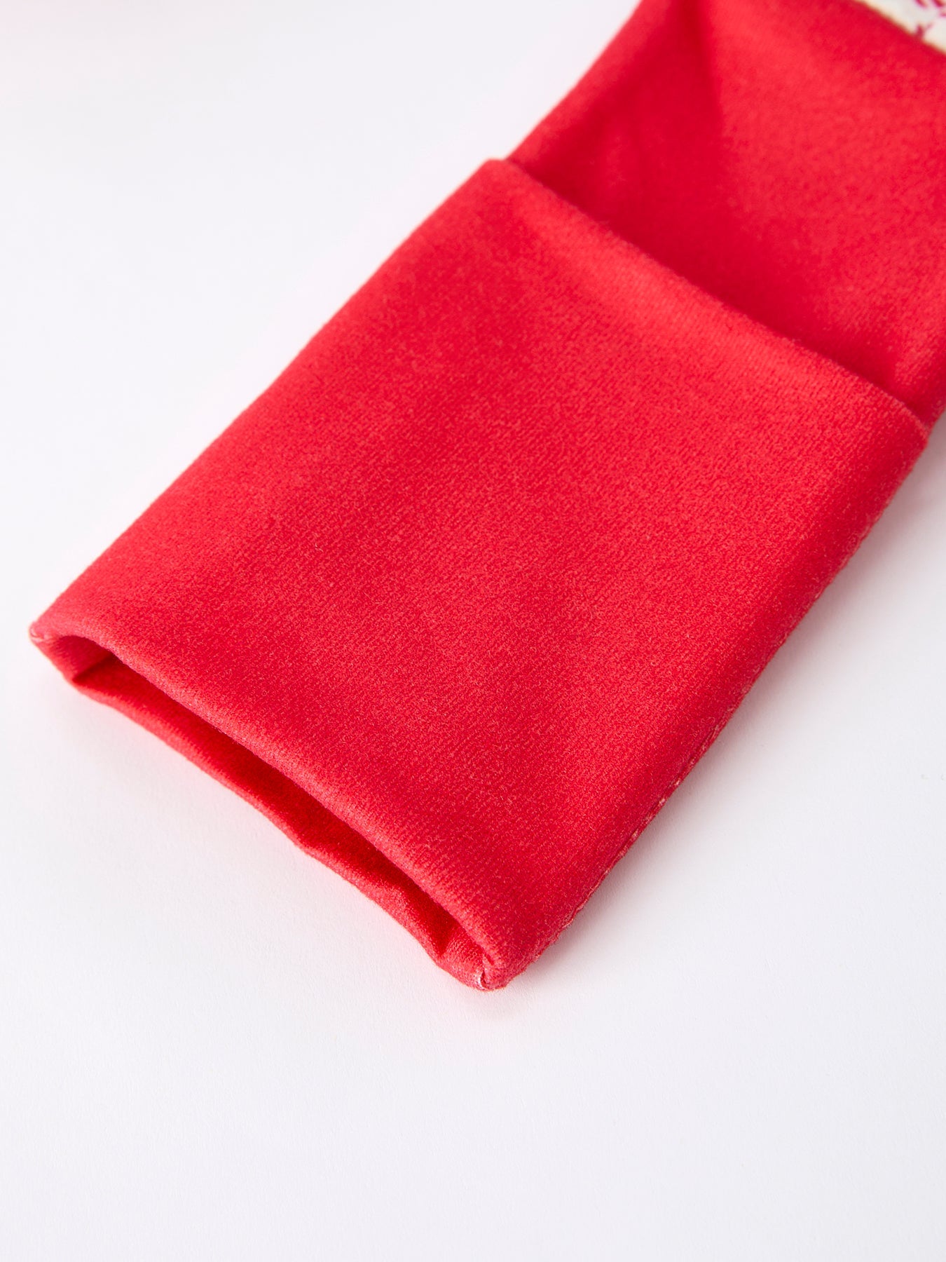 Christmas Plaid Baby Girls Romper with Long Sleeves and Red Cuffs
