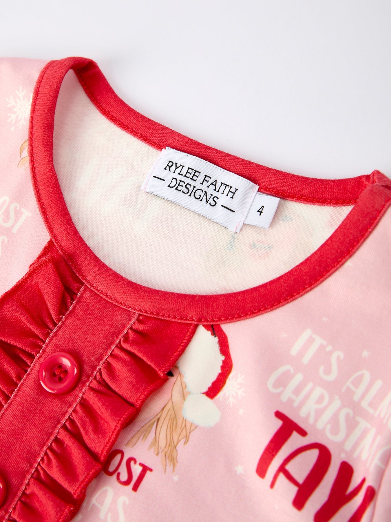 Christmas Santa TS Print Ruffle Girls Pajama Set