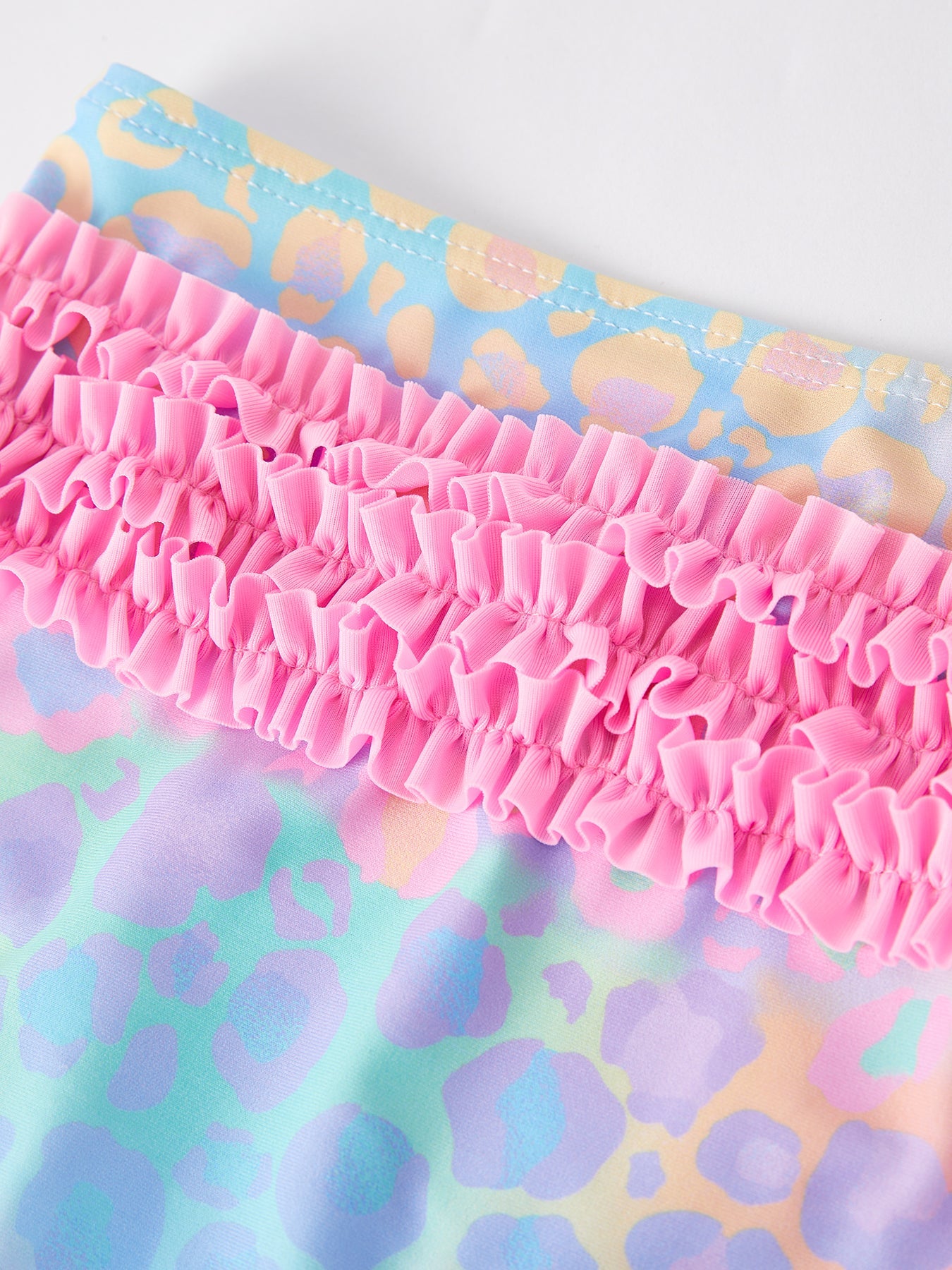 This colorful leopard print swimsuit for girls is sure to make a splash! The vibrant colors and bold pattern will make your little one stand out at the beach or pool. Made with high-quality materials, this swimsuit is comfortable and durable, perfect for hours of water fun.