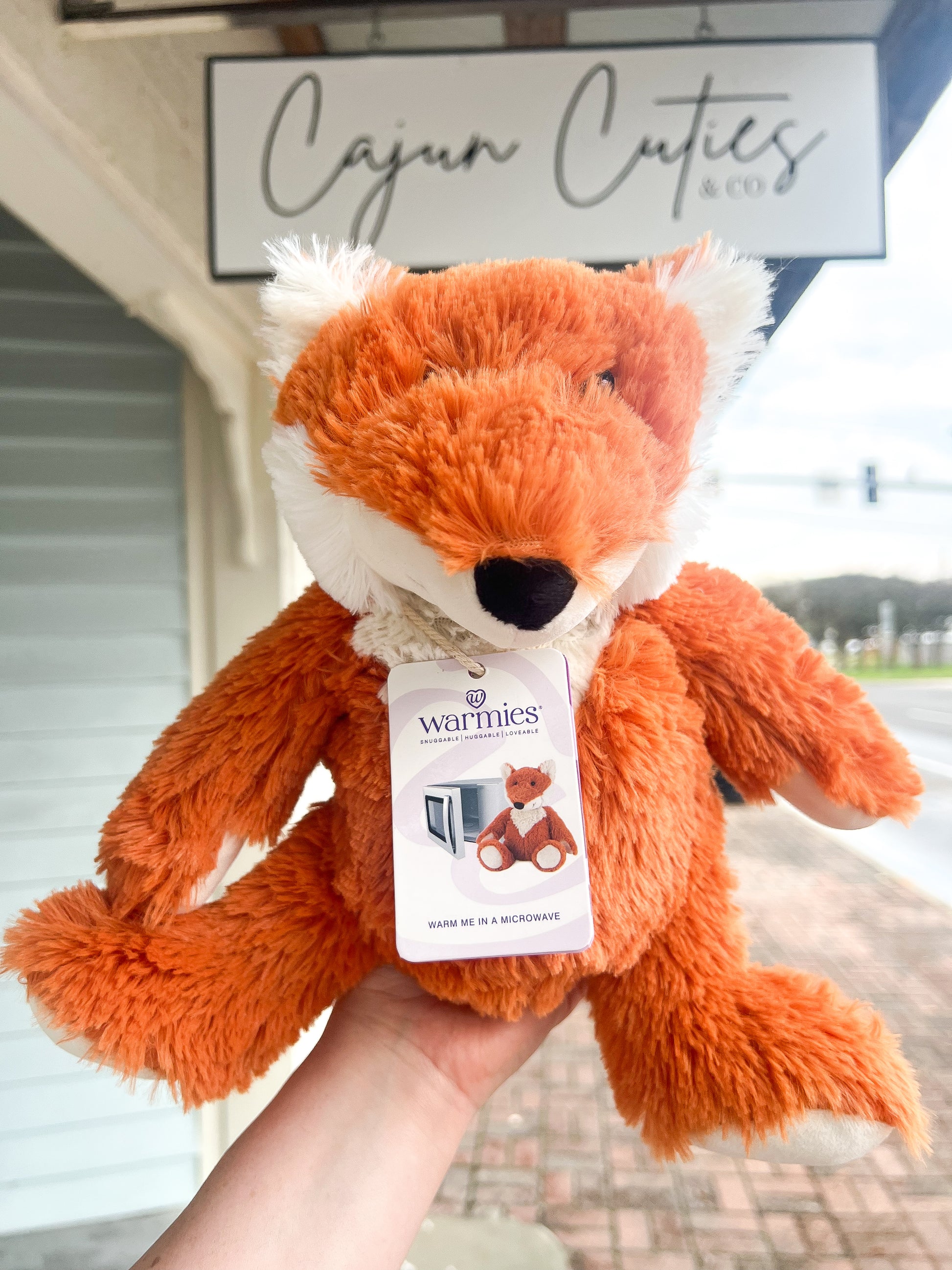 Plush fox Warmie, microwaveable and lavender-scented, perfect for providing comfort and warmth on chilly nights