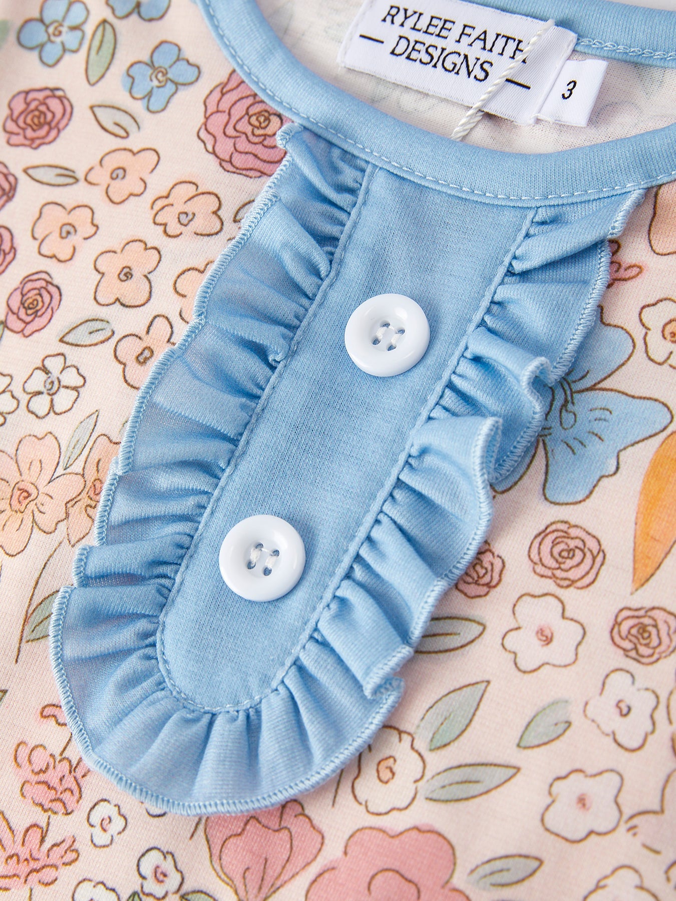 Easter Girls Blue Bunny Floral Print Pajamas Set