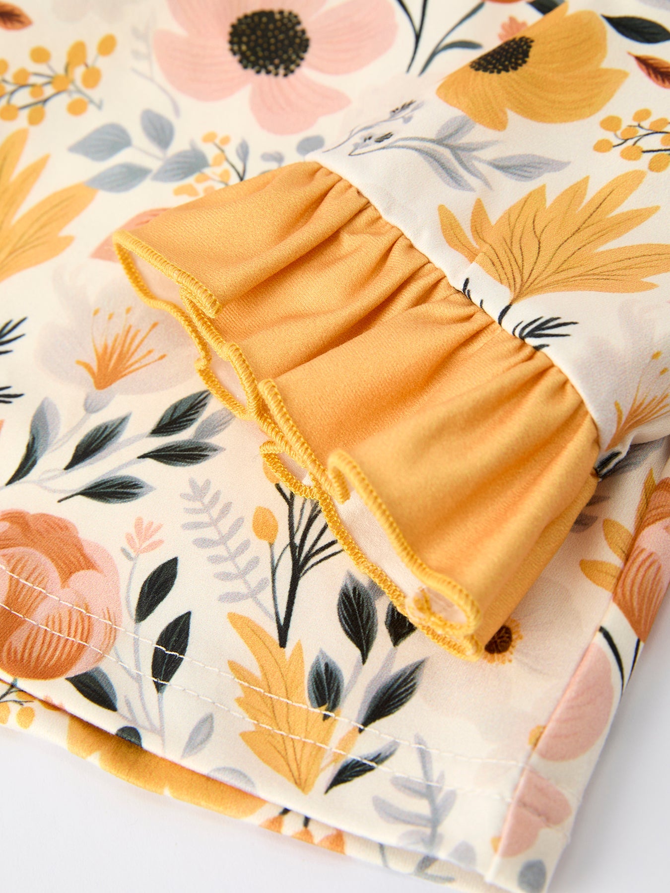 Fall Floral Print Girls Pajamas Set with Ruffle Details