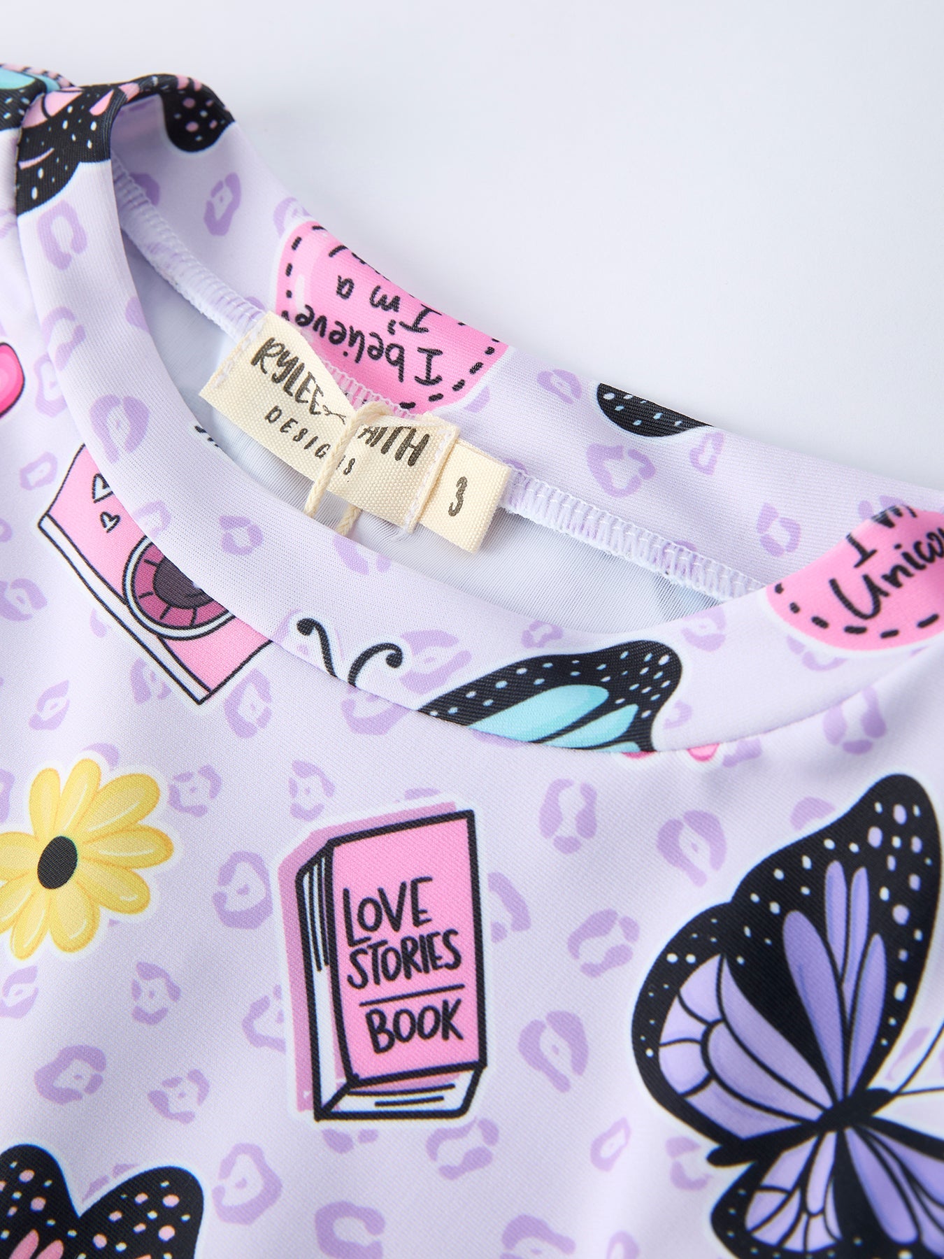 Girls Butterfly Long Sleeve Ruffle Swimsuit Set