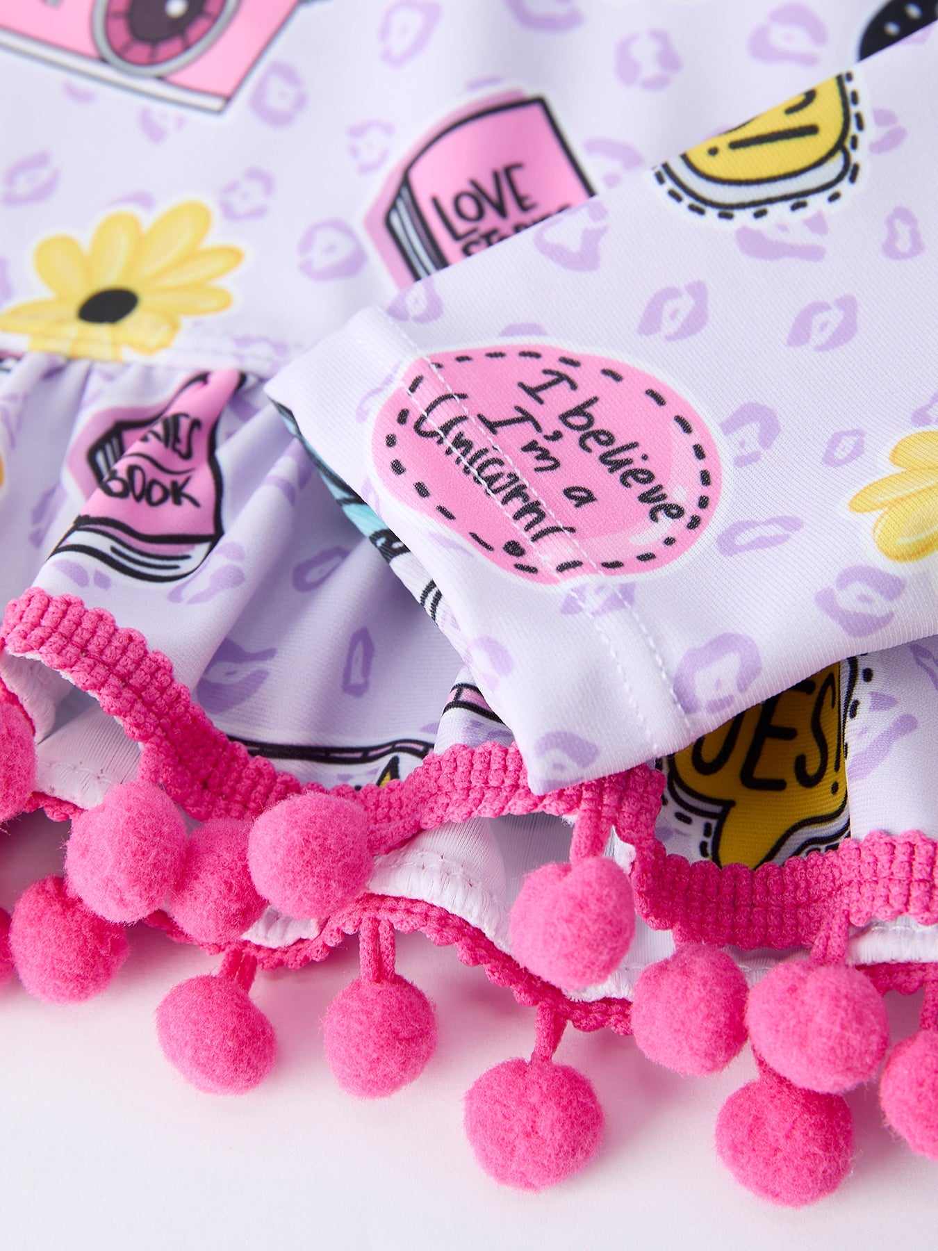 This adorable two-piece swimsuit set features a charming butterfly design that captures every girl's imagination. The long sleeves provide extra sun protection while the ruffled details add a playful, feminine touch. Crafted for comfort and durability, it's perfect for pool days, beach trips, and water adventures. The coordinated set makes getting ready effortless, while the quality construction ensures it withstands splashing and chlorine. Give your daughter a swimsuit that combines style, protection, and fun—she'll love making waves in this eye-catching design.