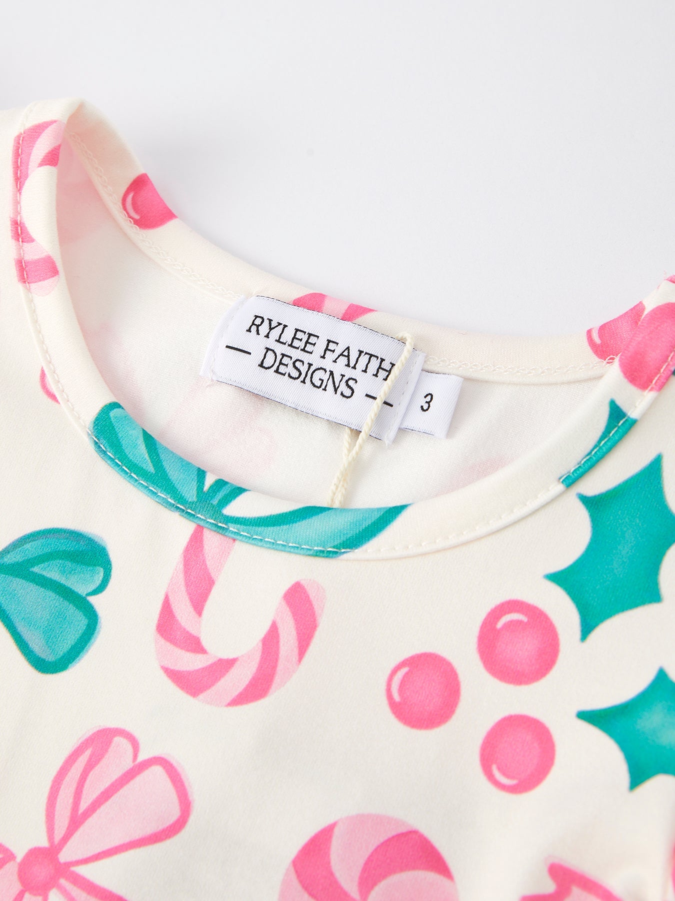 Dress your little girl in our festive and adorable Girls Christmas Candy Bow Print Dress! Featuring a charming candy and bow print, this dress will make her feel like a holiday princess. Perfect for family gatherings and holiday photos, this dress is a must-have for the holiday season.