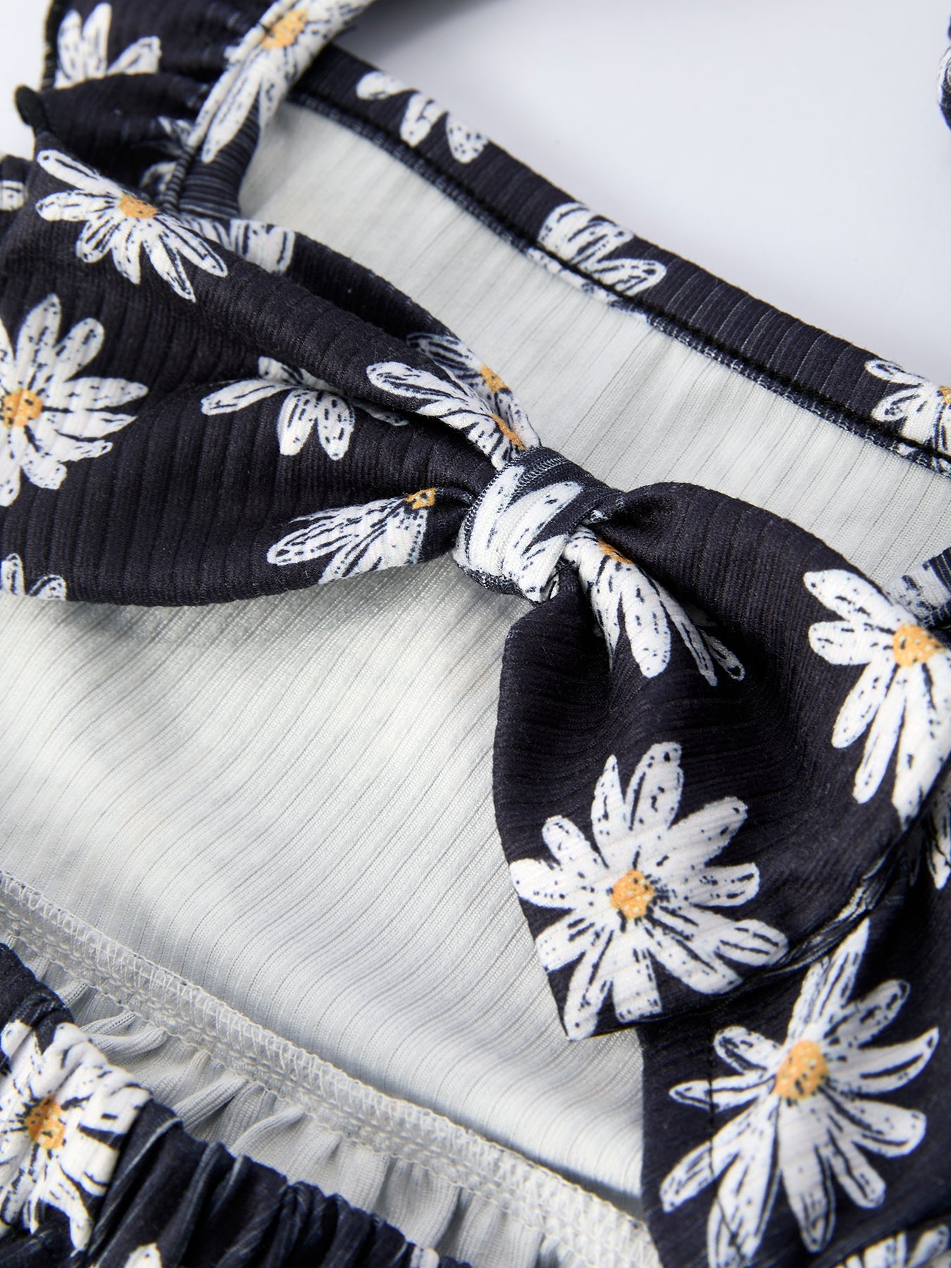 This charming two-piece set features a cheerful daisy print paired with rich mustard yellow accents, creating a versatile look your daughter will love. The coordinated pieces mix and match effortlessly with everyday basics, making it perfect for playdates, family gatherings, or casual outings. Crafted for comfort and durability, this set offers excellent value and endless styling possibilities. A delightful addition to any young girl's wardrobe that combines playful style with practical wear.