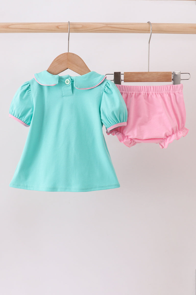 Green christmas tree embroidery bloomer set