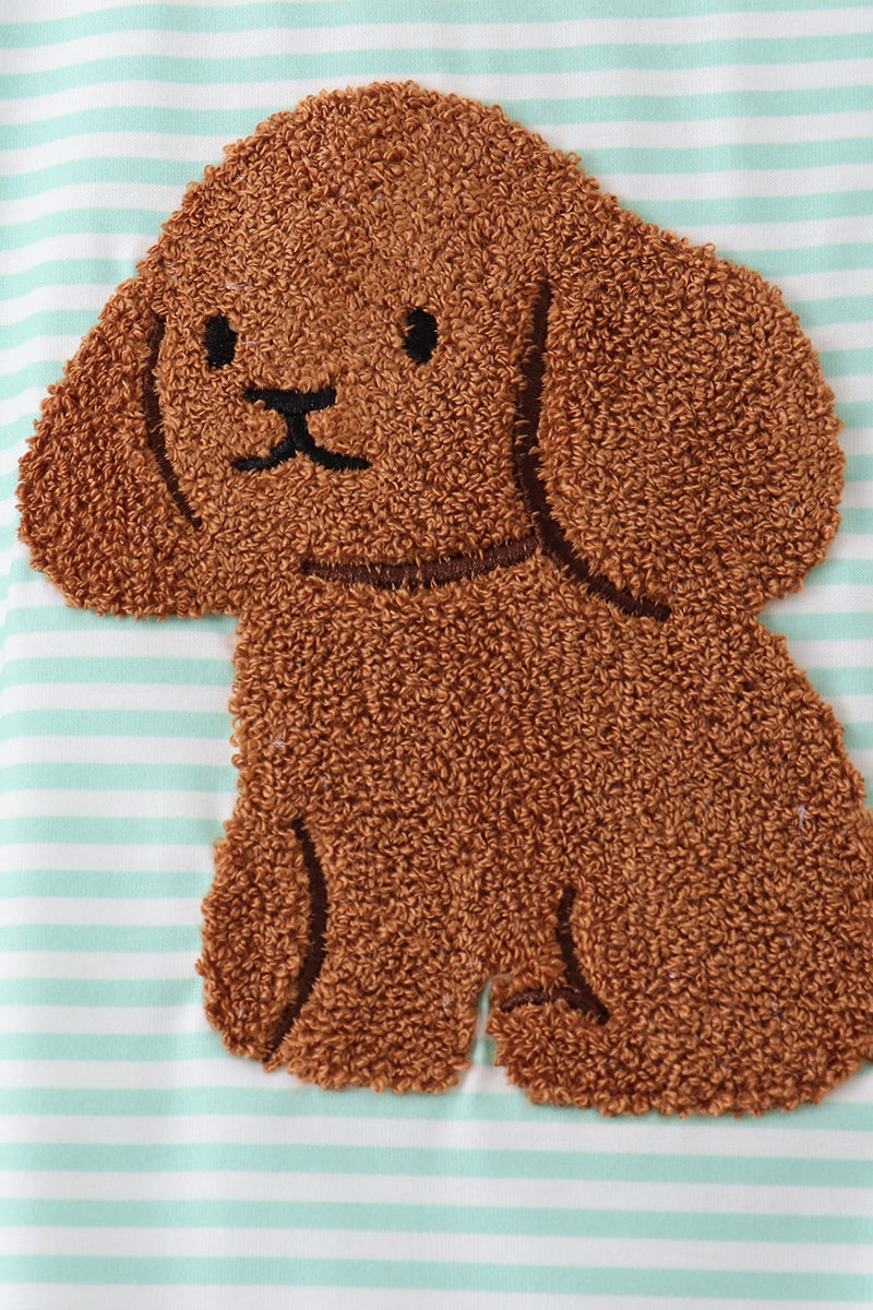 Green stripe puppy french knot shorts set