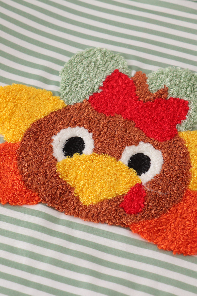 Green turkey french knot stripe pants set