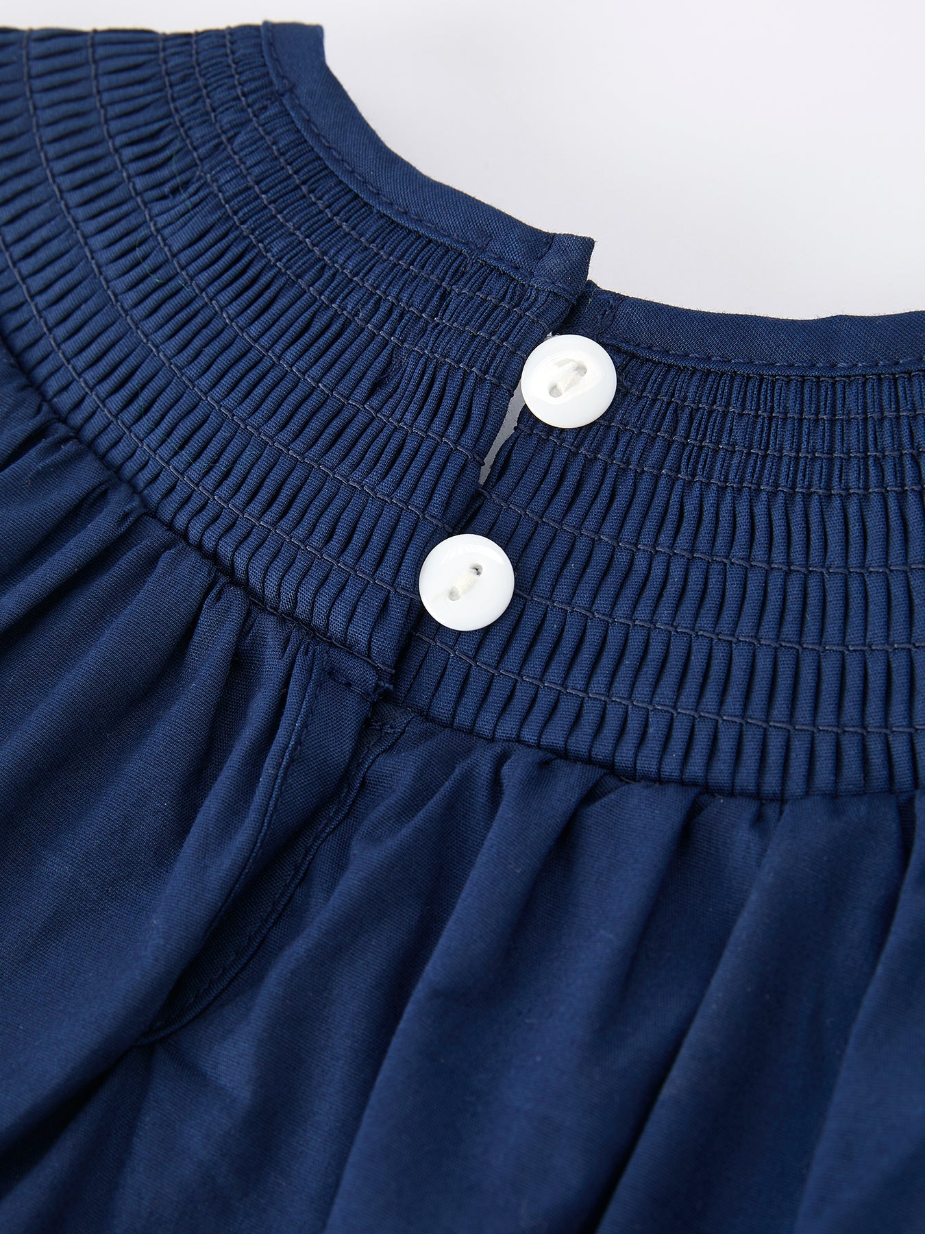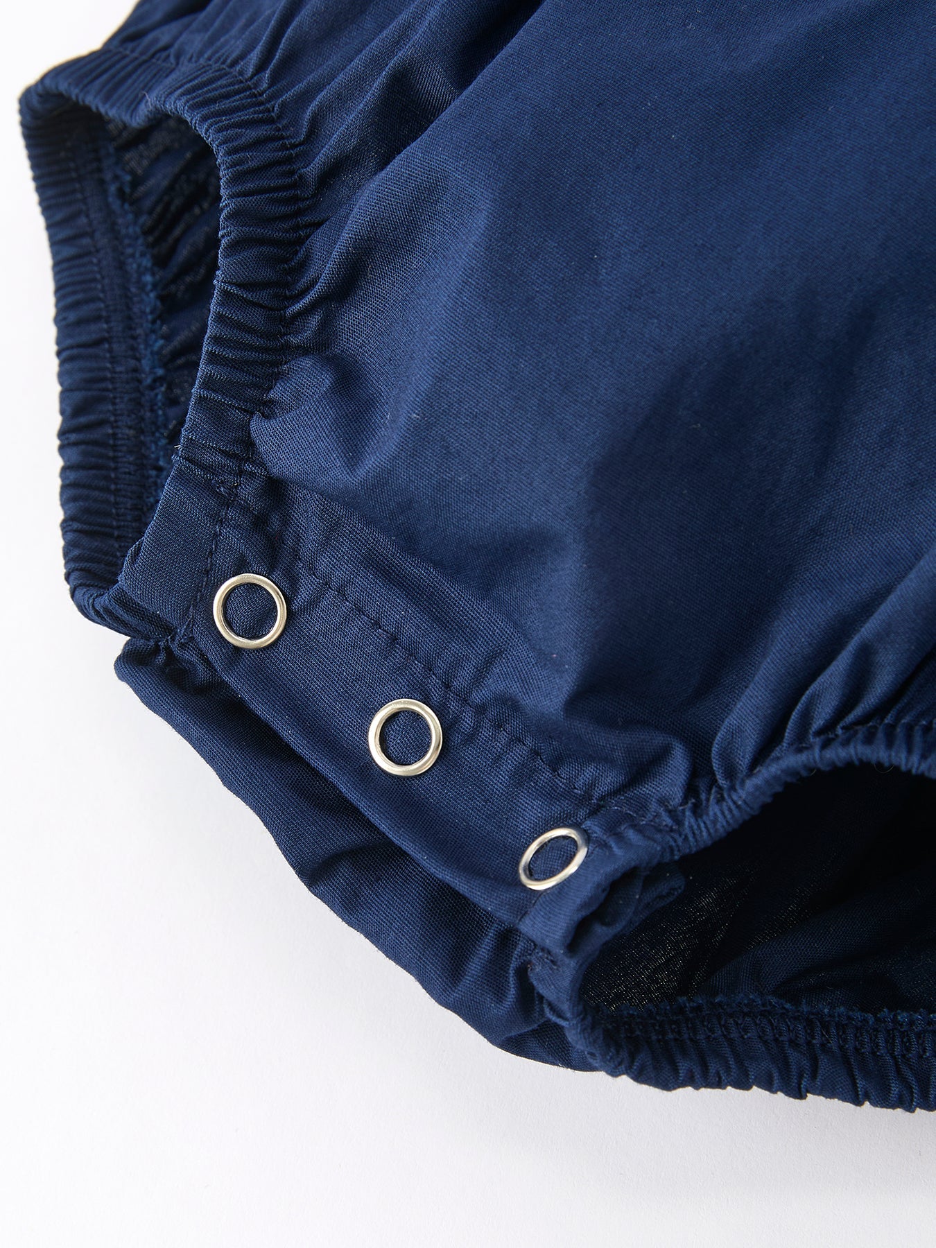 Celebrate the holiday season with this charming Navy Blue Nativity Smocking Embroidered Baby Girls Christmas Romper. Featuring delicate smocking and exquisite embroidery of the nativity scene, this romper adds a meaningful touch to festive gatherings. Crafted for comfort and style, it keeps your little one cozy while making holiday memories truly special. Perfect for photos and family celebrations, this romper blends tradition with adorable design.