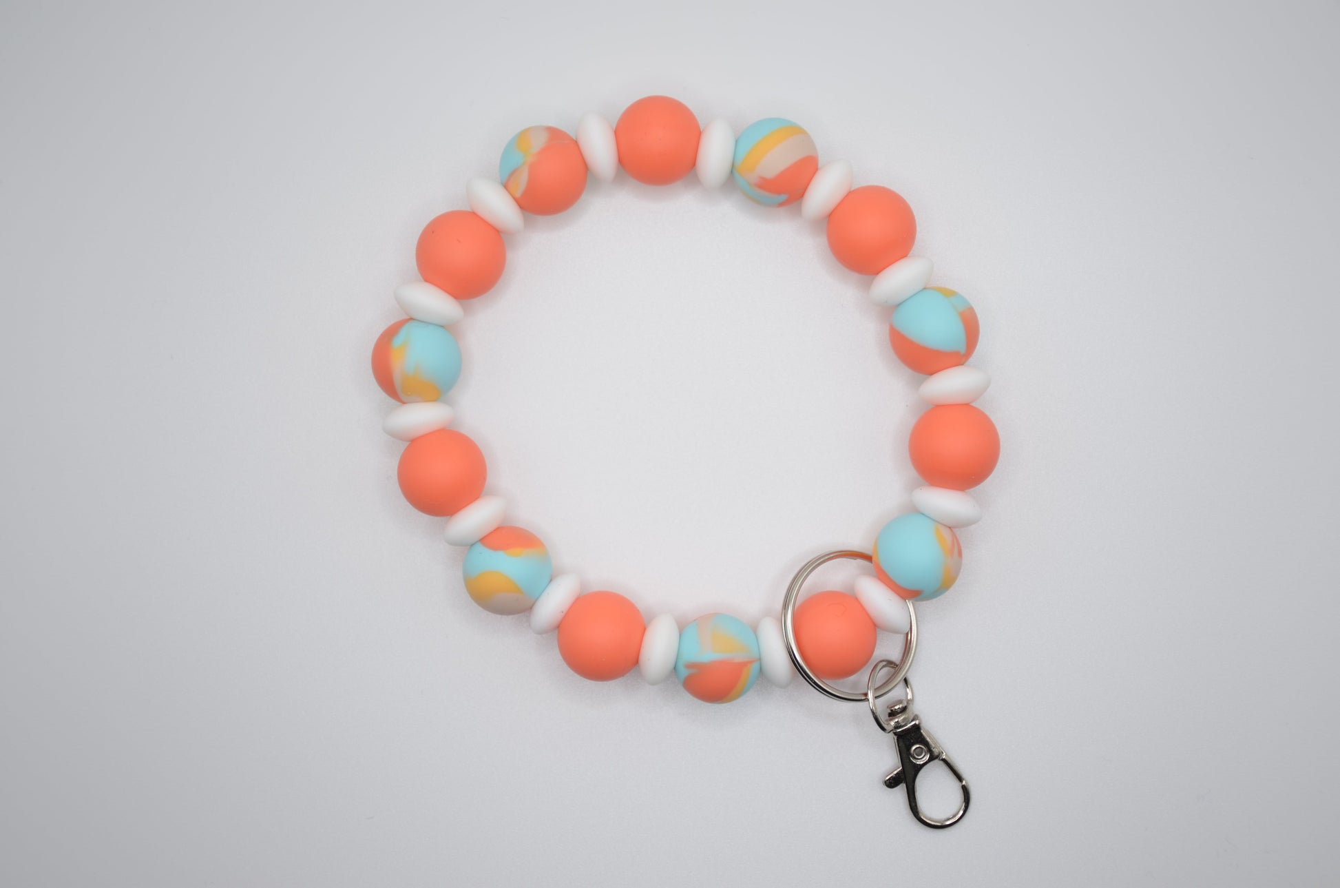 Featuring silicone beads these keychains are soft and durable. They won't clash and jingle, but add a beautiful aesthetic to any set of keys.