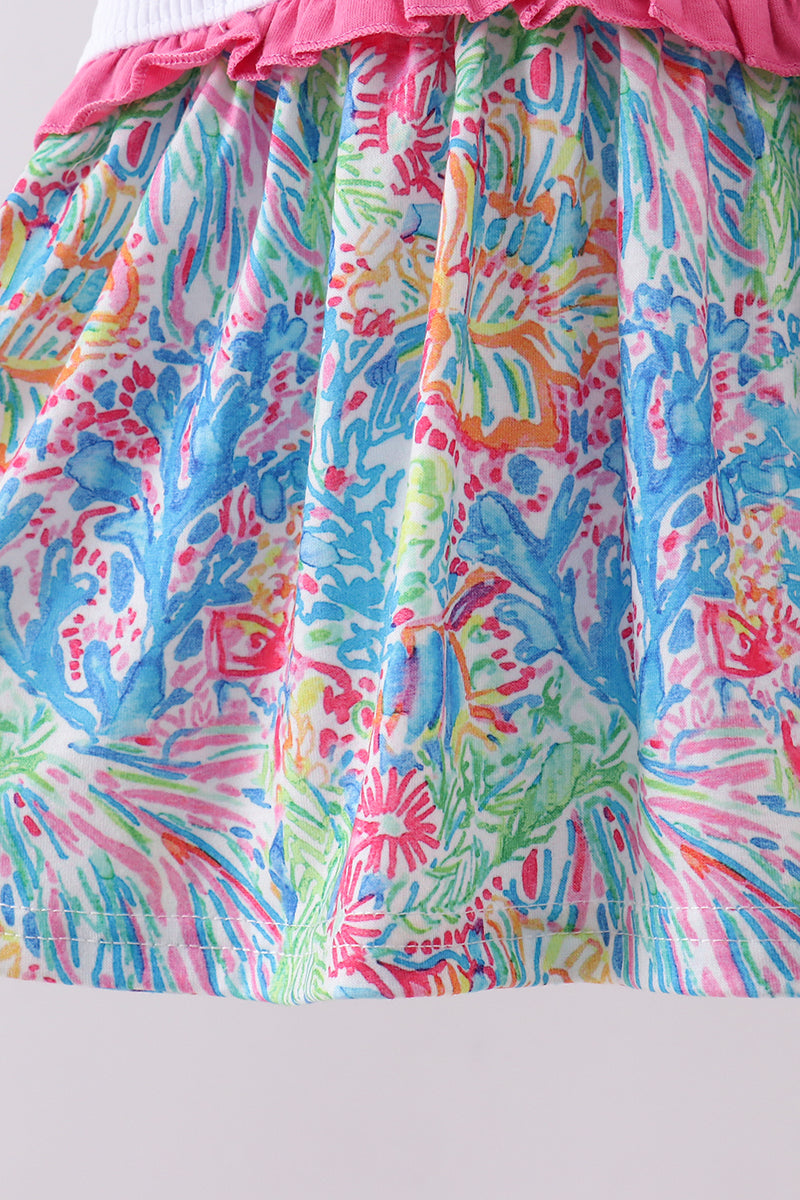 Adorable pink bloomers featuring charming character details and delicate smocking across the bodice. Soft ruffled edges frame the legs for an extra touch of sweetness. Perfect for playdates, photos, or everyday wear, this two-piece set combines comfort with undeniable charm. The elastic waistband ensures a secure fit while your little one moves and plays. A wardrobe essential that's as fun as it is functional!