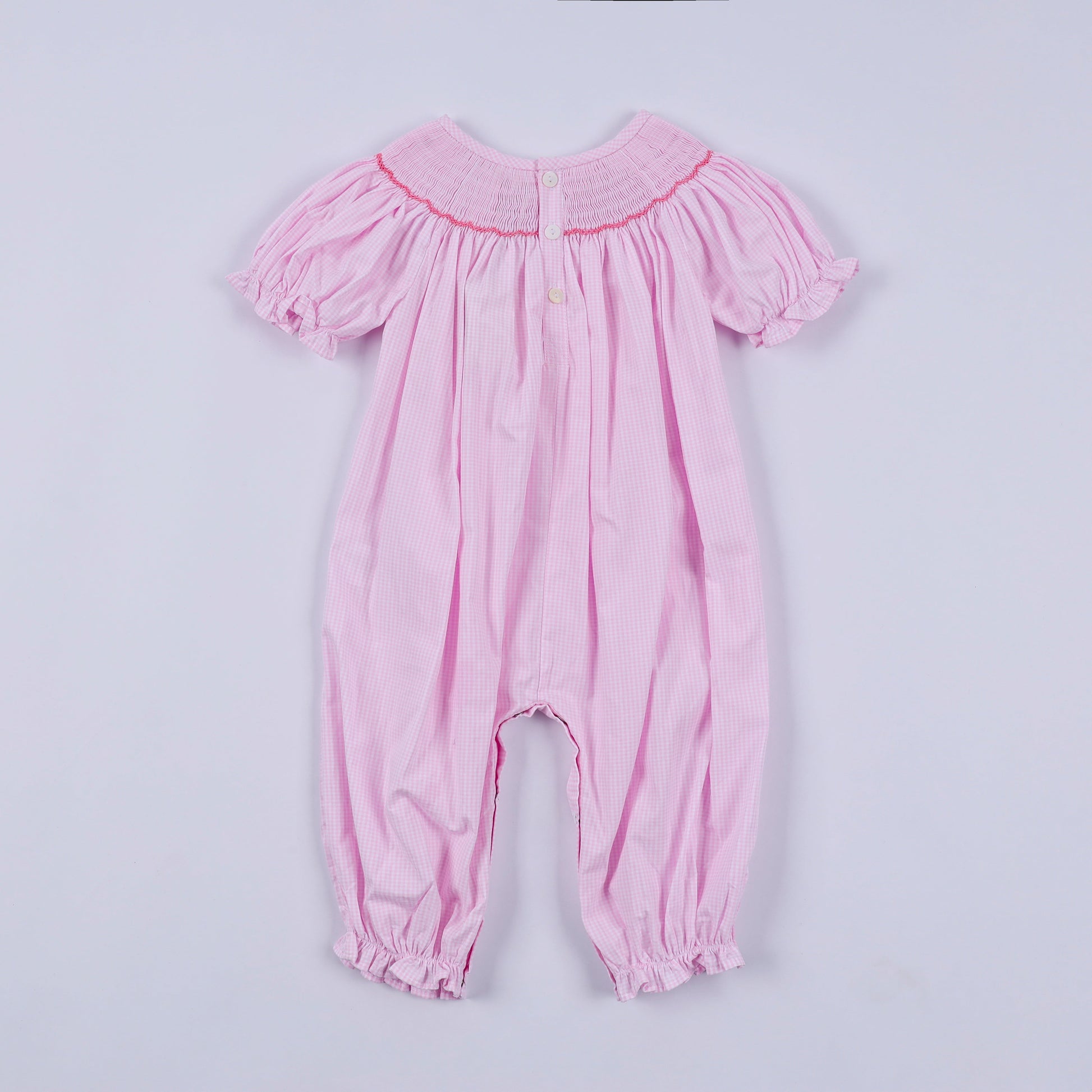 Deck the halls in festive style with this adorable pink Christmas tree hand-smocked ruffle romper! Perfect for holiday photos and celebrations, this charming one-piece features delicate hand-smocking details and playful ruffles that twirl with every move. The cheerful pink hue paired with classic Christmas tree motifs creates a whimsical look that captures the magic of the season. Comfortable and cute, it's the ideal choice for little ones who want to spread holiday cheer in style.