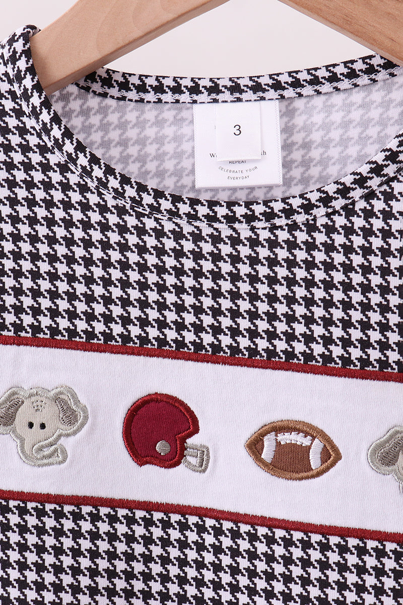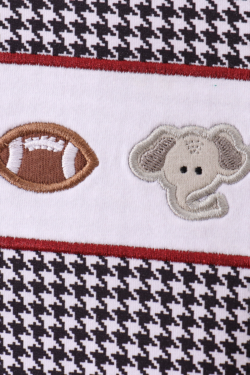 Elevate your wardrobe with this premium black top featuring an eye-catching Alabama elephant embroidery. Crafted with meticulous attention to detail, the embroidered design brings a touch of Southern charm and spirited pride to any outfit. Perfect for game days, casual outings, or whenever you want to showcase your love for the Crimson Tide in style. The quality construction ensures durability and comfort, making this a versatile staple that pairs effortlessly with jeans, skirts, or athletic wear. Show your colors with confidence and flair!