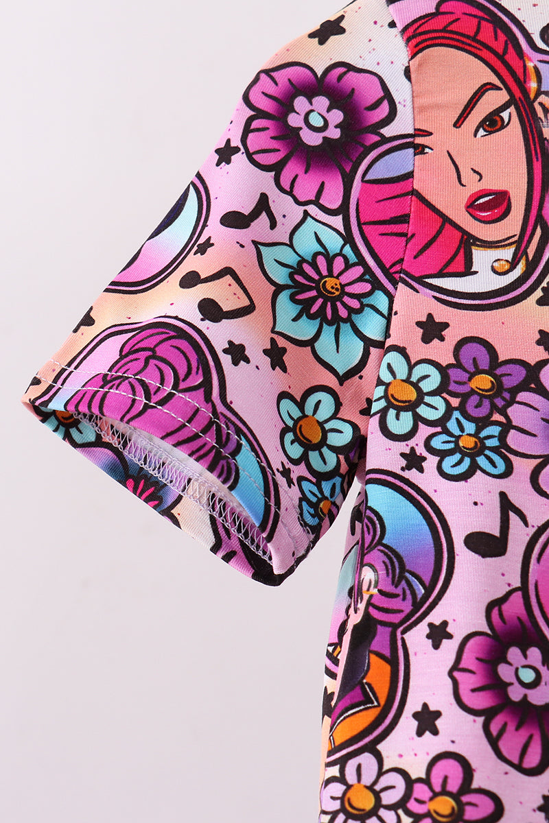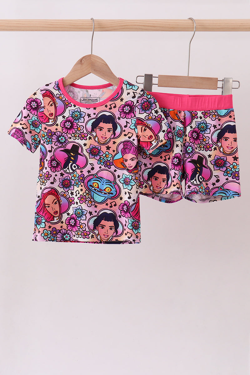 Purple character bamboo pajama shorts set