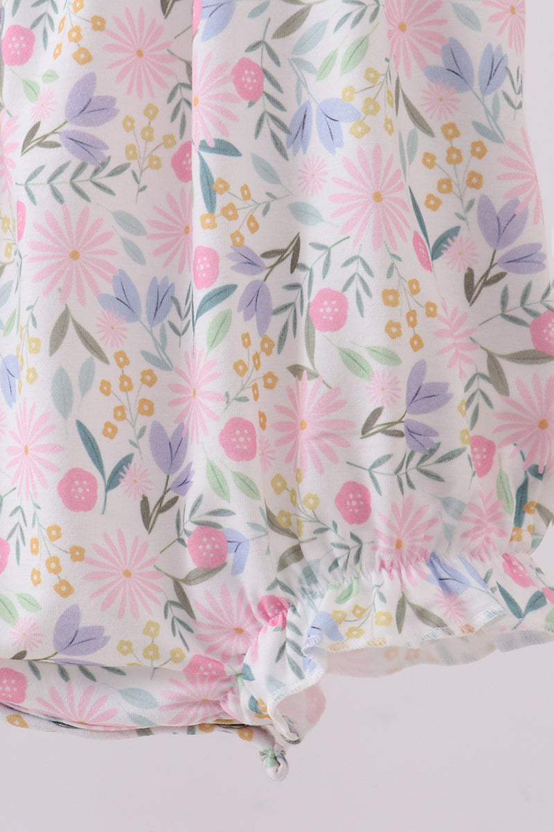 Purple floral smocked ruffle bubble