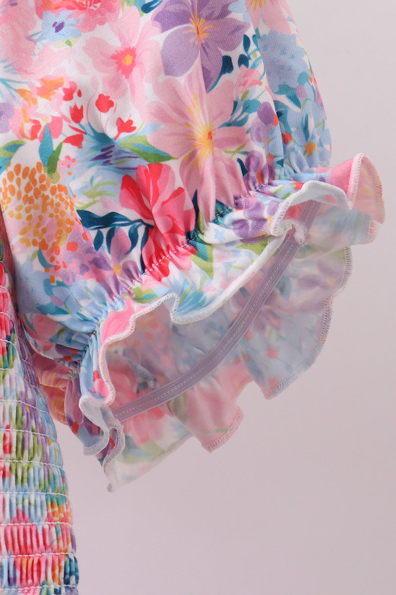 Twirl into spring with this charming purple floral smocked dress! Delicate blooms dance across soft fabric while the smocked bodice creates a flattering, feminine silhouette that moves with you. Perfect for garden parties, weekend brunch, or whenever you want to feel effortlessly put-together. The playful print brings joy to your wardrobe, while the timeless smocking detail adds vintage-inspired elegance. Comfortable, stylish, and utterly delightful.