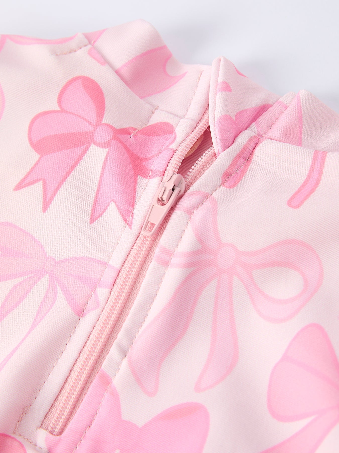 Keep your little one sun-safe and stylish with this charming long-sleeve one-piece swimsuit. Featuring a delightful bow print and playful ruffled details, it combines UV protection with a fun, feminine design that kids love. The long sleeves provide extra coverage for extended beach days, while the comfortable fit ensures she can splash and play freely. Perfect for pool parties, beach vacations, or everyday water adventures—a wardrobe essential that balances protection with personality.