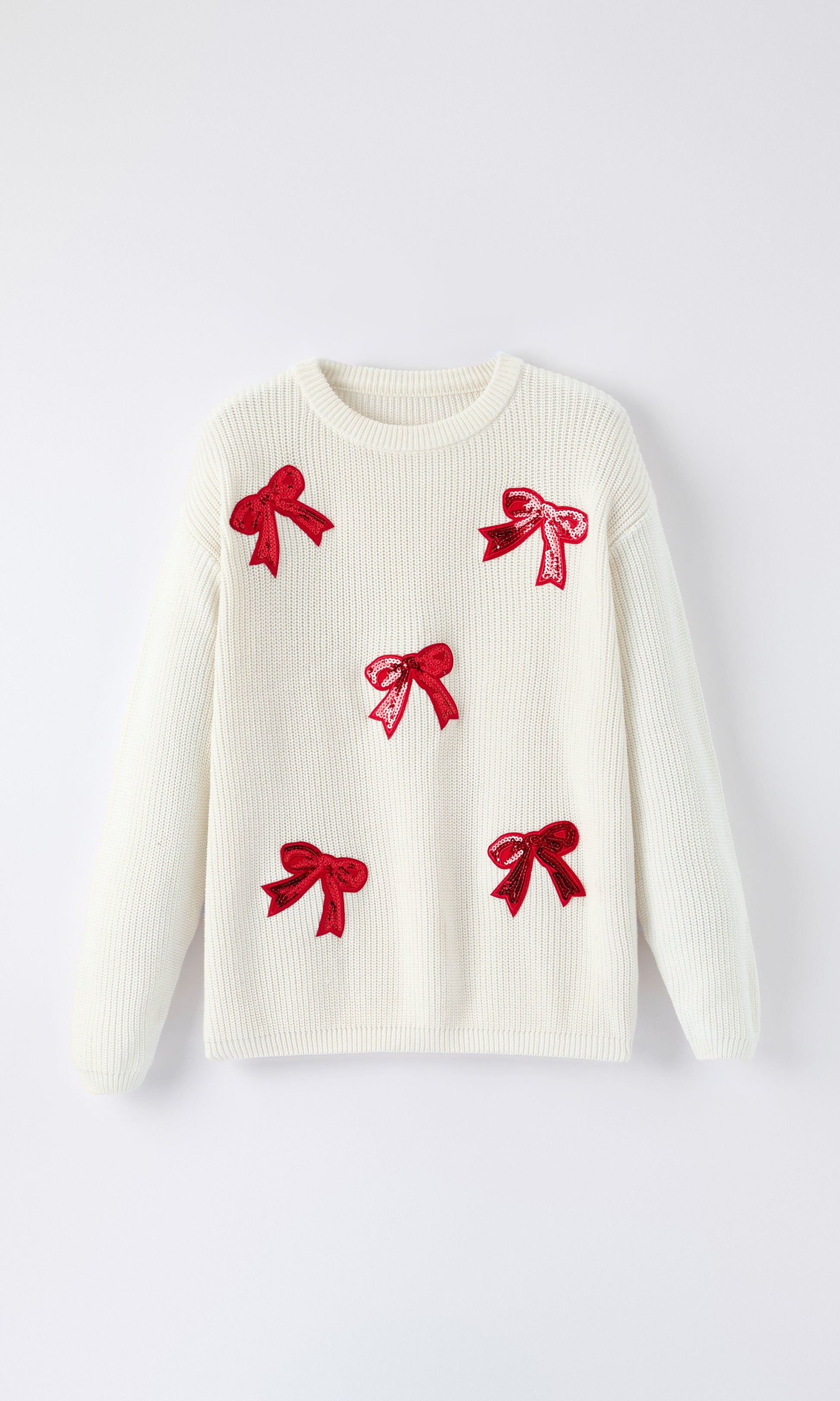 Mommy & Me Winter Girls Bow Sequins Pullover Sweater