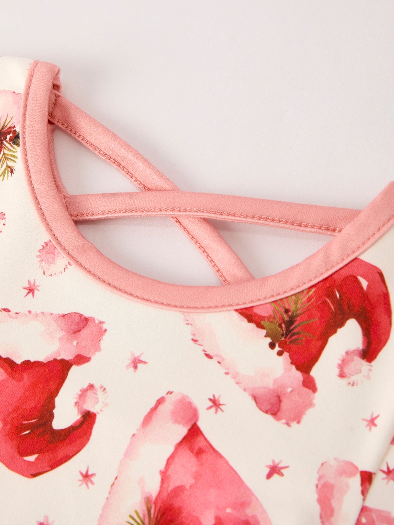 Celebrate the festive season in style with this Winter Christmas Santa Hat Print Girls Pocket Ruffle Dress. Featuring playful Santa hat prints and charming ruffle details, it adds a joyful touch to any holiday occasion. Practical pockets offer convenience, while the comfortable fit ensures your little one can move and play with ease. Perfect for holiday parties or family gatherings, this dress brings festive cheer and lasting comfort in one delightful package.