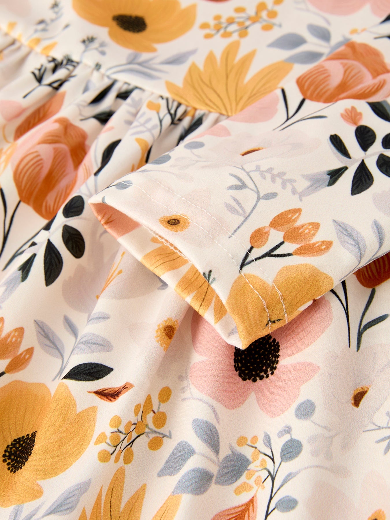 Winter Floral Long Sleeve Ruffled Girls Dress